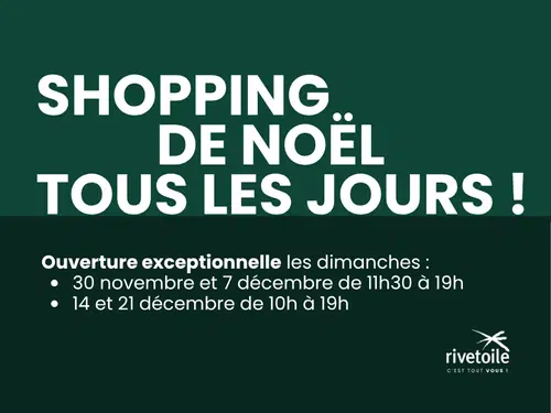 Votre shopping de Noël à Strasbourg, c'est tous les jours avec Rivetoile ! Profitez de l'ouverture de vos enseignes les 4 dimanches de l'Avent pour votre shopping des...